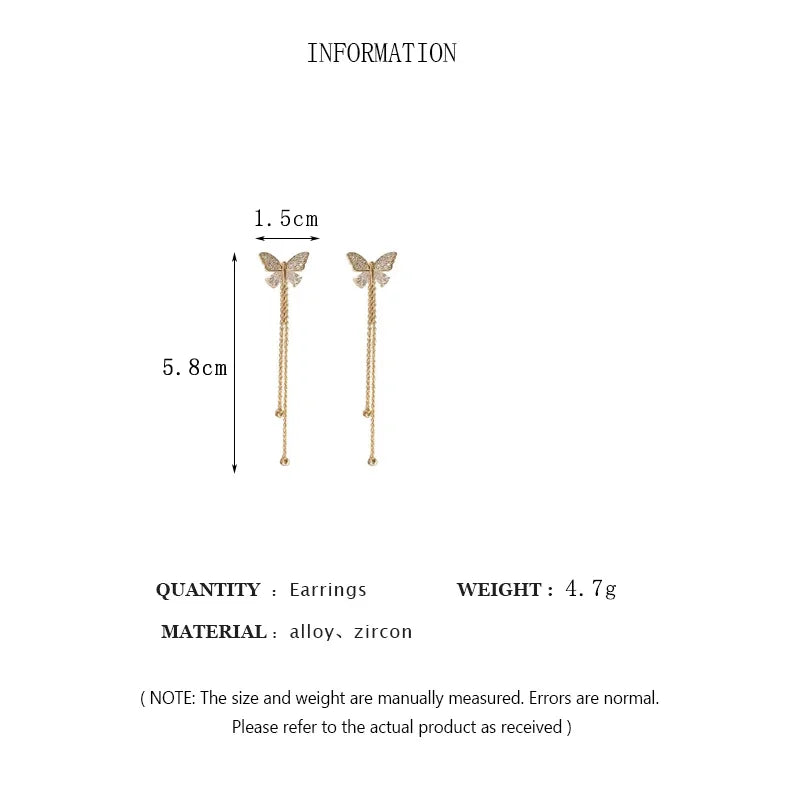 Exquisite Butterfly Long Tassel Earrings Two Ways To Wear Rhinestone Drop Earings For Women Party Wedding Jewelry Girls Gifts