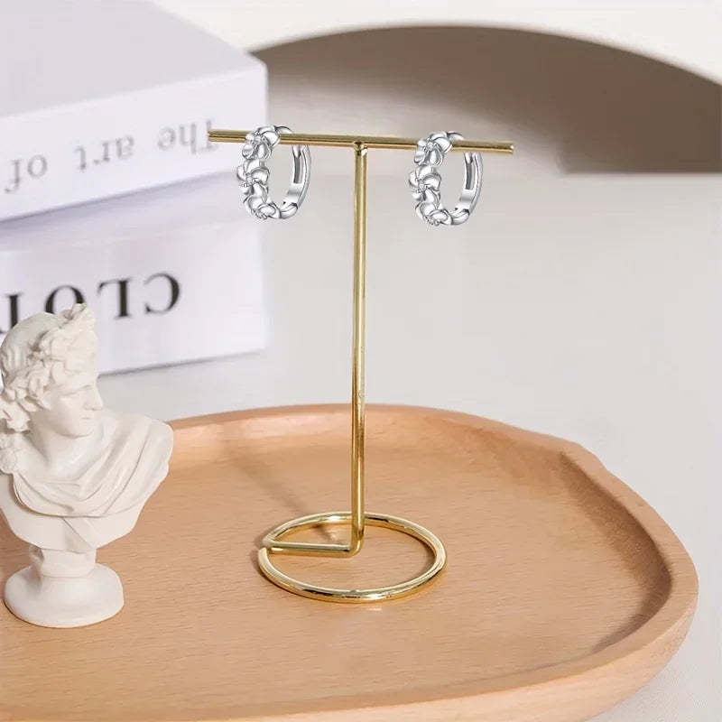 Sterling 925 Silver Exquisite Camellia Pattern Hoop Earrings Cute Elegant Style Delicate Gift For Women Girls Daily Casual